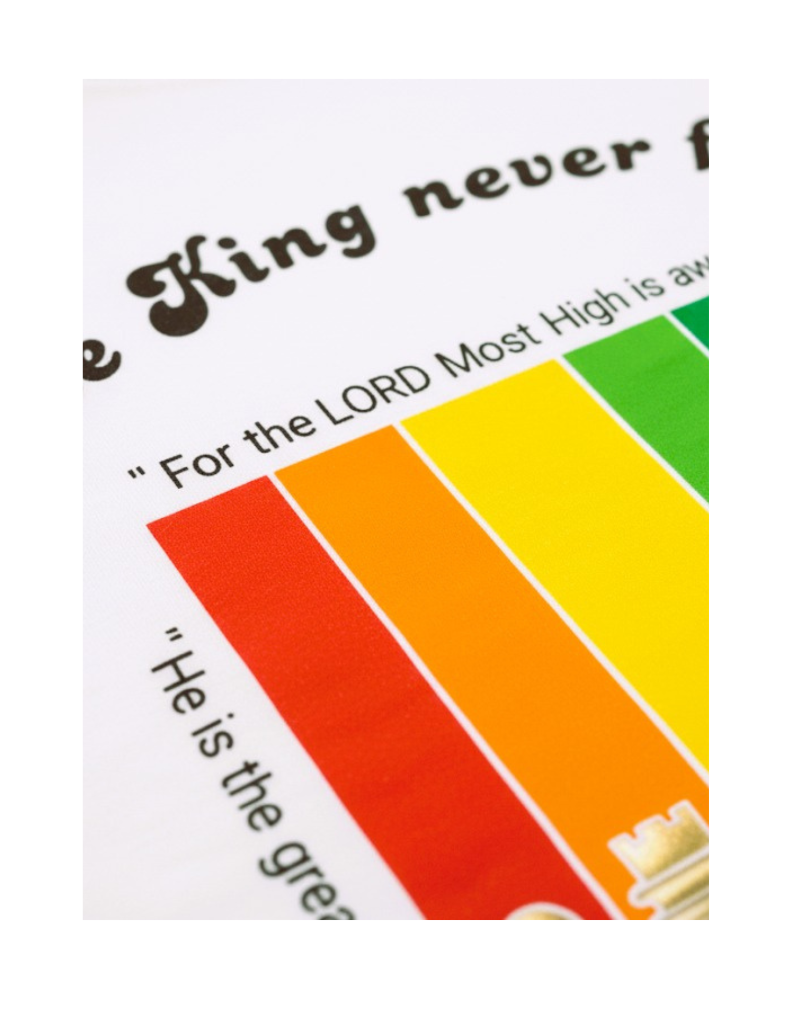 Stand firm in faith with this bold declaration of God's sovereignty. "The King never falls" isn't just a statement—it's a reminder that when the LORD Most High is on your side, you're unstoppable.